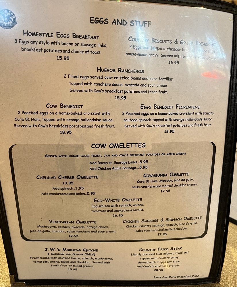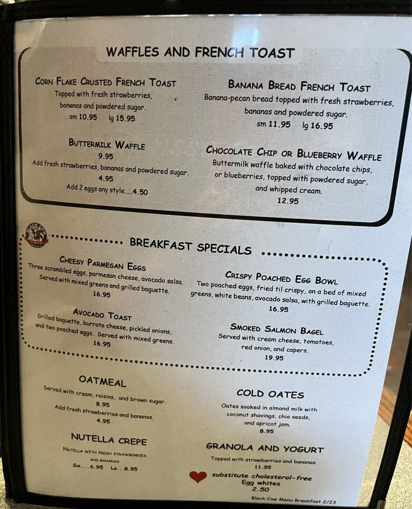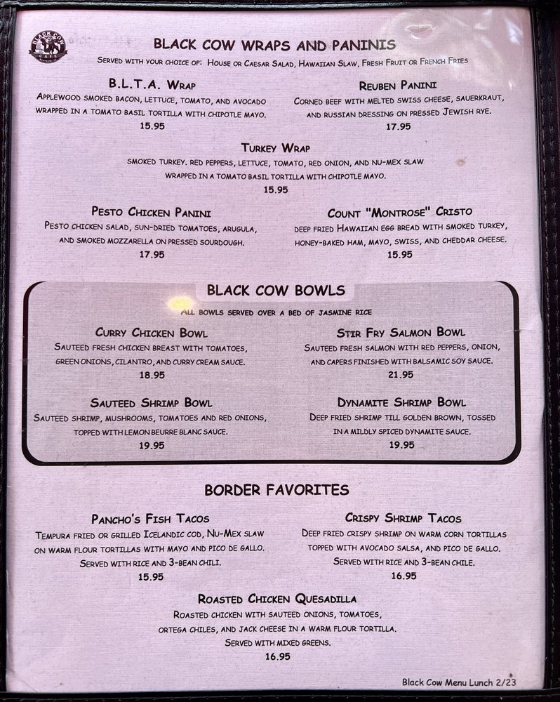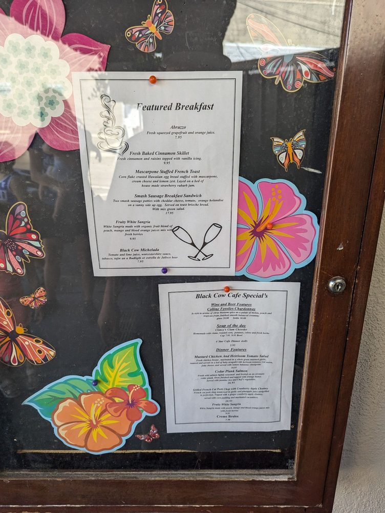 The Black Cow Cafe Menu