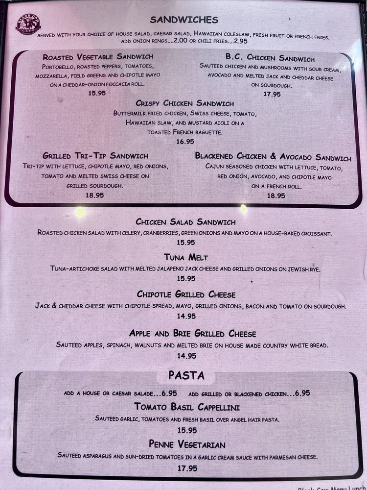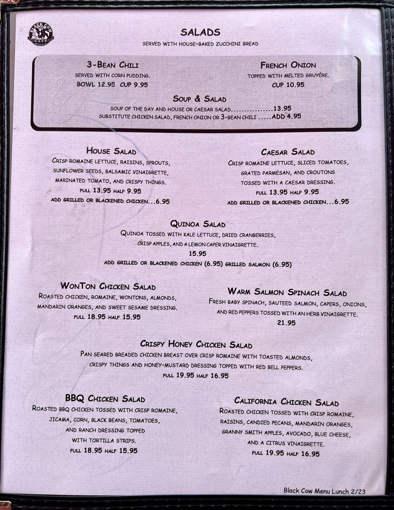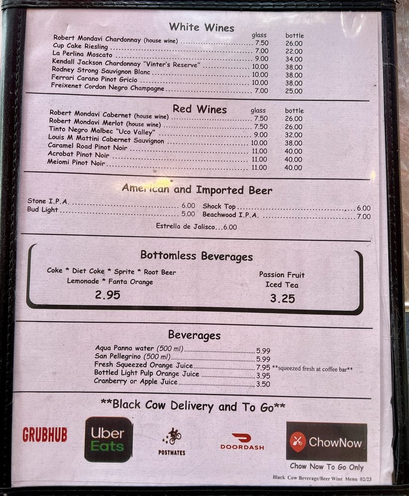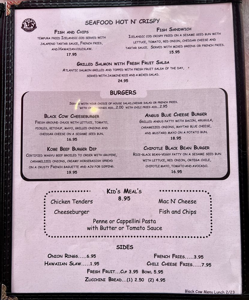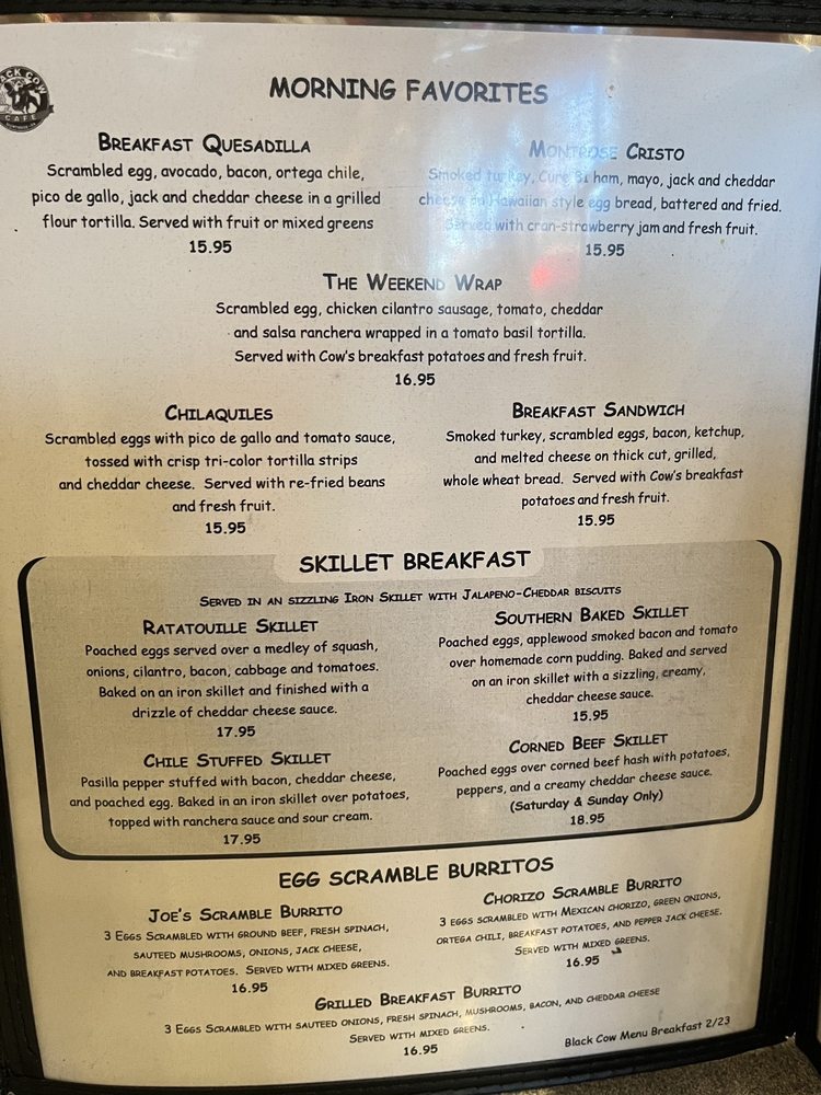The Black Cow Cafe Menu